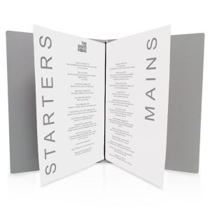 Vår menypärm Berlin är tillverkade med en grov vävstruktur och känsla. Har en yta som är lätt att hålla ren. Berlin menypärmar finns i en rad av fina färger. Dessa menyer finns i flera storlekar. Dessa menypärmar går att få med eller utan metallhörn.