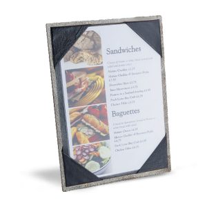 Slim: Pappers storlek: (B140xH297mm) Menyplattans mått: B165xH325mm